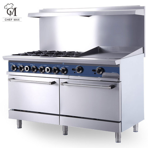 Chefmax OEM ODM ticari özel Oven kalbur abd endüstriyel fırın ile gaz sobası 4 brülör gaz ocağı