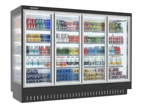 Sapatinho de vidro comercial 4 portas de cerveja, leite, congelar, armário, superfície, geladeira multideck