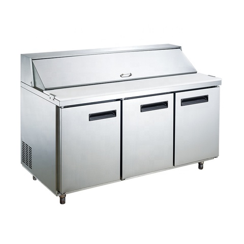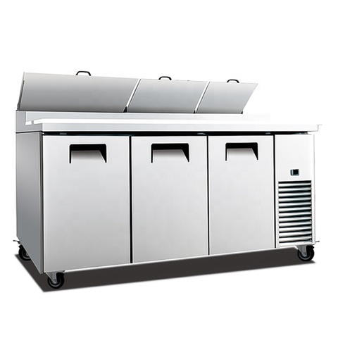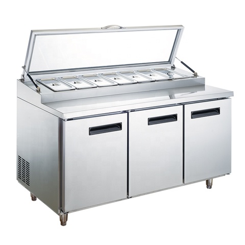 60in tủ lạnh Pizza 3 cửa Tủ đông với quạt làm mát ứng dụng thanh salad để chuẩn bị và lưu trữ thực phẩm đông lạnh